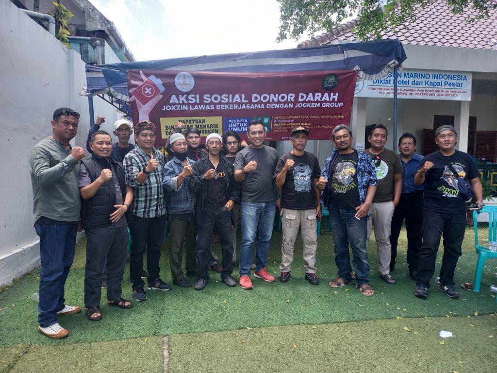 SUNMARINDO.COM (Yogyakarta) – Kolaborasi Bakpia Jogkem dan Joxin Lawas Gelar Donor Darah. Kerja bareng antara Bakpia Jogkem dan Komunitas Joxin Lawas menggelar kegiatan sosial kemanusiaan berupa donor darah di Bakpia Jogkem Langenastran Lor, Panembahan, Kapanewon Kraton, Minggu (12/3/2023) berlangsung semarak. Kegiatan yang diinisiasi Direktur Utama Jogkem Grub Ariyanto, S.E.,M.Par, bersama Erwin dari komunitas Joxin Lawas, sudah berjalan kali kedua dalam kegiatan kali ini menargetkan 75 orang pendaftar donor darah dan 37 orang berhasil mendonorkan darahnya.