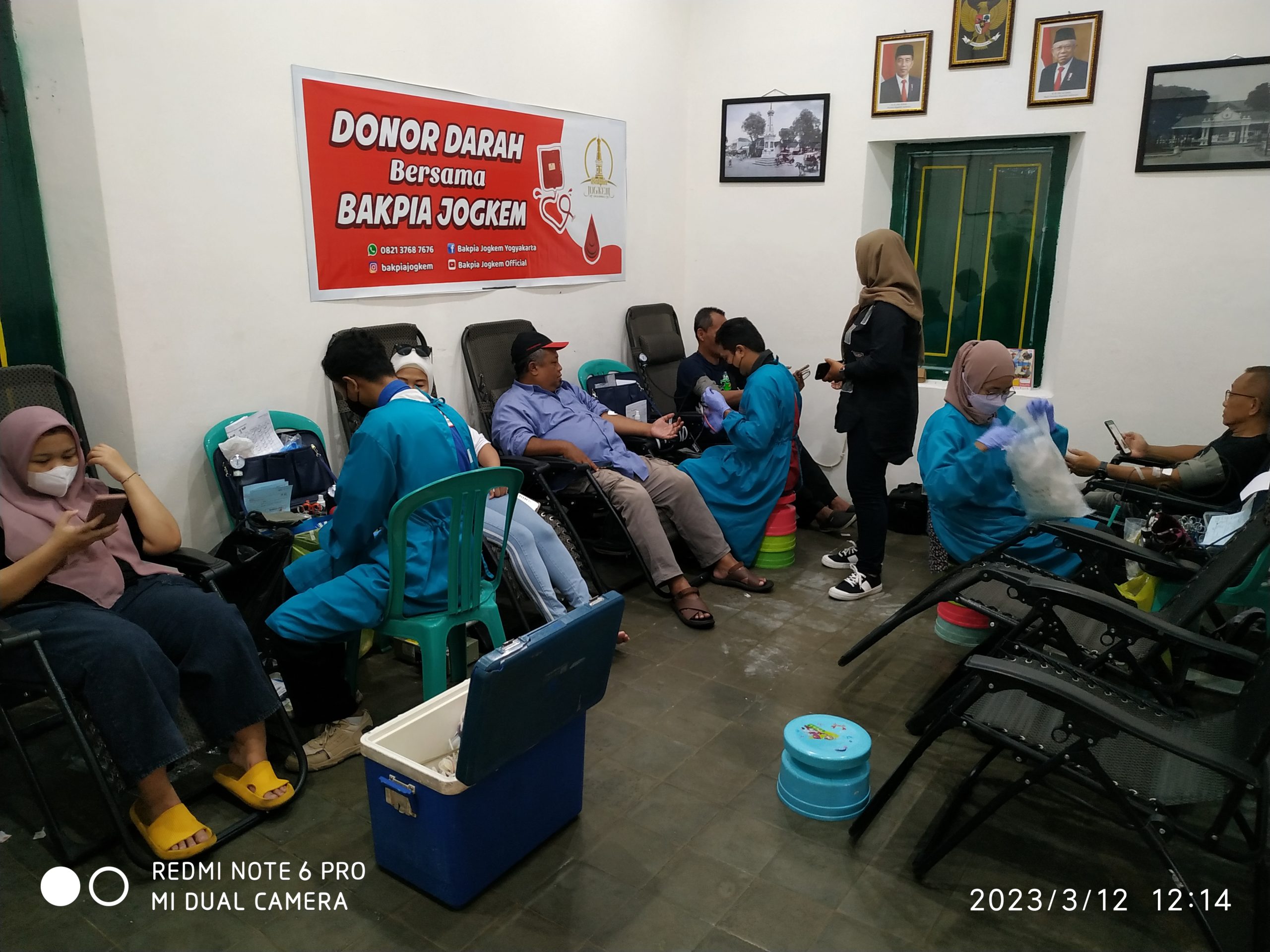 SUNMARINDO.COM (Yogyakarta) – Kolaborasi Bakpia Jogkem dan Joxin Lawas Gelar Donor Darah. Kerja bareng antara Bakpia Jogkem dan Komunitas Joxin Lawas menggelar kegiatan sosial kemanusiaan berupa donor darah di Bakpia Jogkem Langenastran Lor, Panembahan, Kapanewon Kraton, Minggu (12/3/2023) berlangsung semarak. Kegiatan yang diinisiasi Direktur Utama Jogkem Grub Ariyanto, S.E.,M.Par, bersama Erwin dari komunitas Joxin Lawas, sudah berjalan kali kedua dalam kegiatan kali ini menargetkan 75 orang pendaftar donor darah dan 37 orang berhasil mendonorkan darahnya.