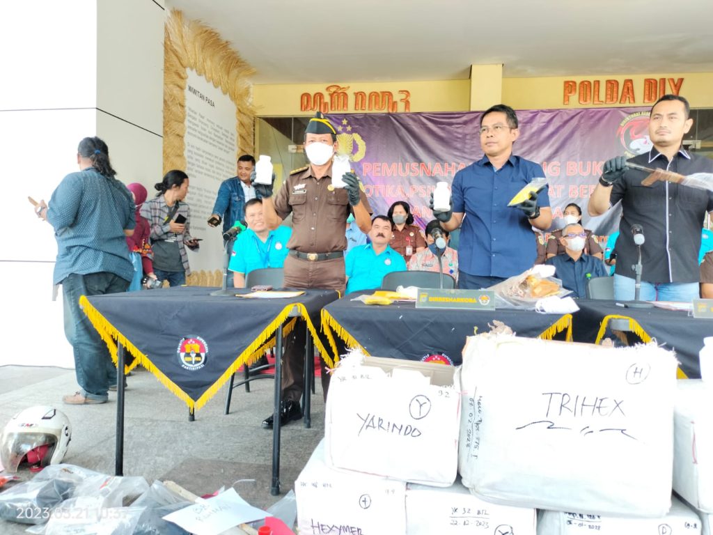 Pelaksanaan pemusnahan barang bukti kejahatan disaksikan langsung oleh berbagai pihak intansi seperti Kejaksaan Tinggi DIY, Pengadilan Tinggi DIY, BNNP DIY, BPPOM DIY, GMDM, dan banyak istansi lain yang terlibat juga rekan media TV, cetak maupun online.