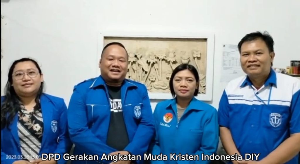 SUNMARINDO.COM (Yogyakarta) – Berlokasi di Macaliso The Professional Laundry Hotel (23/03/2023) Pengurus DPD Gerakan Angkatan Muda Kristen Indonesia ( GAMKI ) DIY yang terdiri Ketua Mahendra Setyahadi Nugraha, SE, Sekretaris Yekti Utami, S.Miss., Bendahara Herdayani Puruhita, dan Humas K. Herman Setiawan berkoordinasi dan membuat video klip sebagai bentuk apresiasi dan dukungan nyata GAMKI DIY akan upaya Kepolisian Daerah Istimewa Yogyakarta memberikan rasa aman dan ketertiban masyarakat utamanya di bulan suci Ramadhan 1444 H ini.