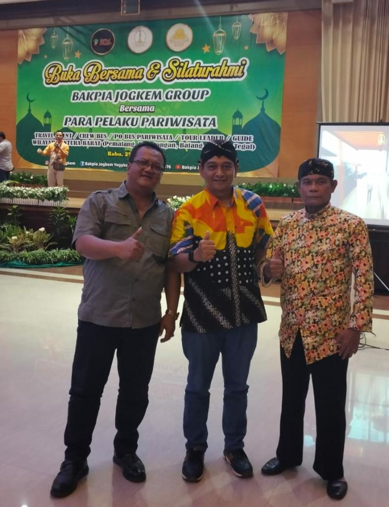 SUNMARINDO.COM (Pemalang)– Bertempat di Regina Hotel Pemalang, Pengusaha Bakpia Jogkem Group menggelar Buka Bersama dan silaturahmi dengan para pelaku wisata, mulai Dari Travel Agent, Crew Bus, PO Bus Pariwisata Tour leader, Guide yang sudah menjadi mitra kerja selama ini di Pantura Barat meliputi Pemalang, Pekalongan, Batang, Brebes dan Tegal, Rabu (29/3/2023).