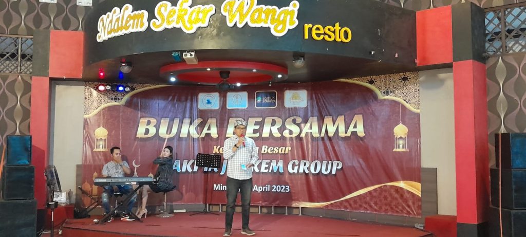 SUNMARINDO.COM (Sleman) – Bertempat di Sekar Wangi Resto, Minggu (9/4/23) di adakan acara yang sangat meriah, sekitar 300 karyawan Jogkem Group asyik melebur di acara dendang lagu Buka Puasa Bersama. Acara Buber kali ini sengaja diadakan di Sekar Wangi Resto yang masih menjadi satu group Jogkem dan diikuti oleh seluruh karyawan dari Jogkem Ireda, Jogkem Gedongkuning, Jogkem Alkid, Jogkem Mangkuyudan, Jamur Jawon Resto, Sekar Wangi Resto dan Sun Marino.