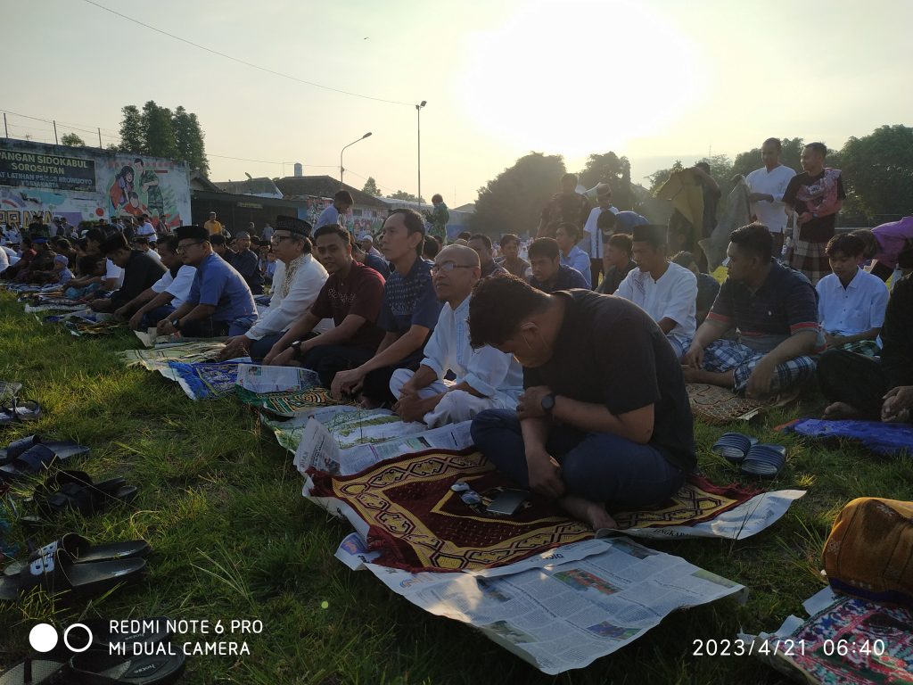 SUNMARINDO.COM (Yogyakarta) – Lebih kurang 650 Kaum muslimin dan muslimah serta anak-anak di Kelurahan Sorosutan Yogyakarta dan sekitarnya beramai- ramai menyerbu lapangan Sidokabul untuk melaksanakan Sholat Idul Fitri 1444 H yang di selenggarakan Jumat,(21/4/23).